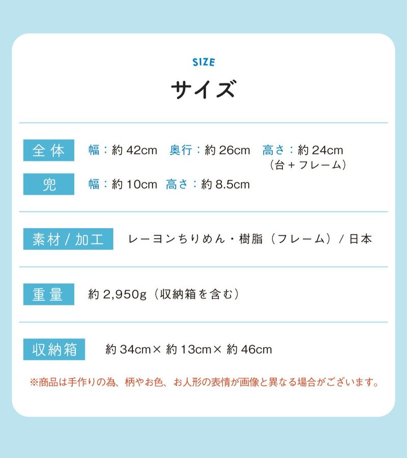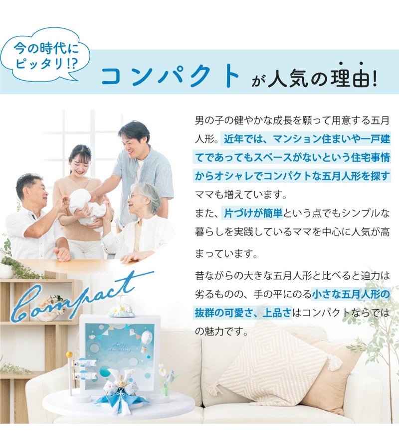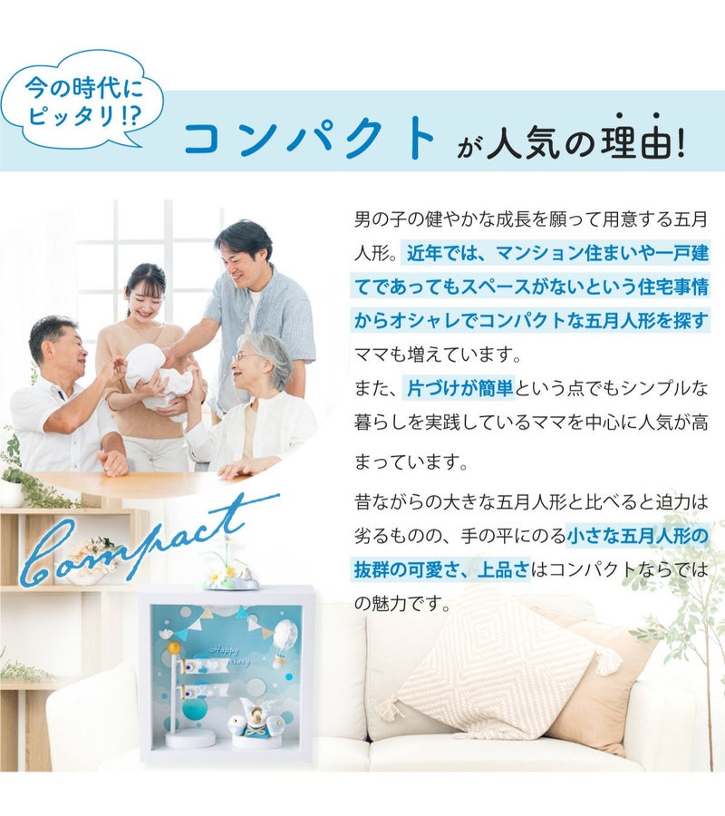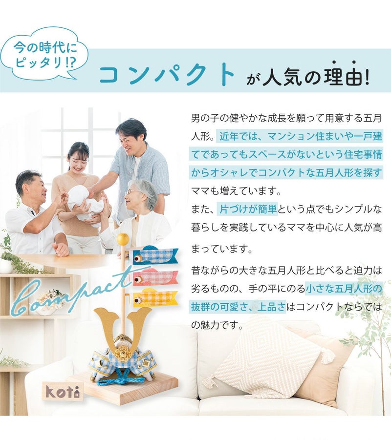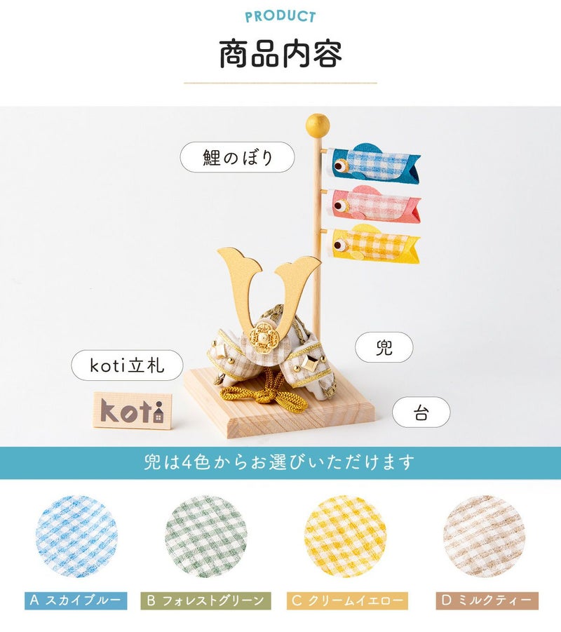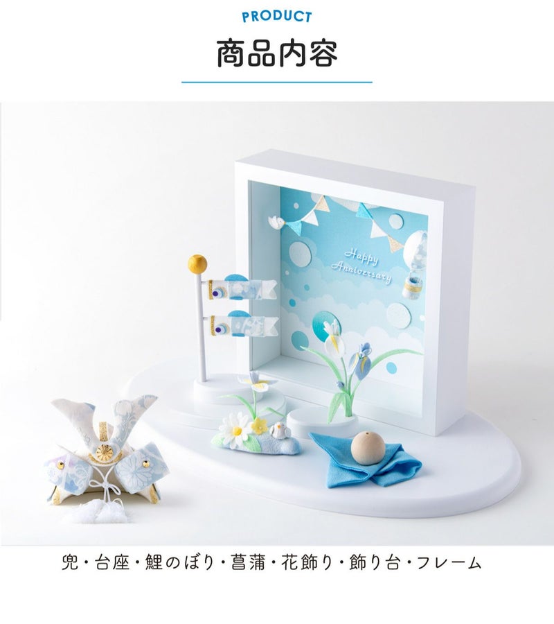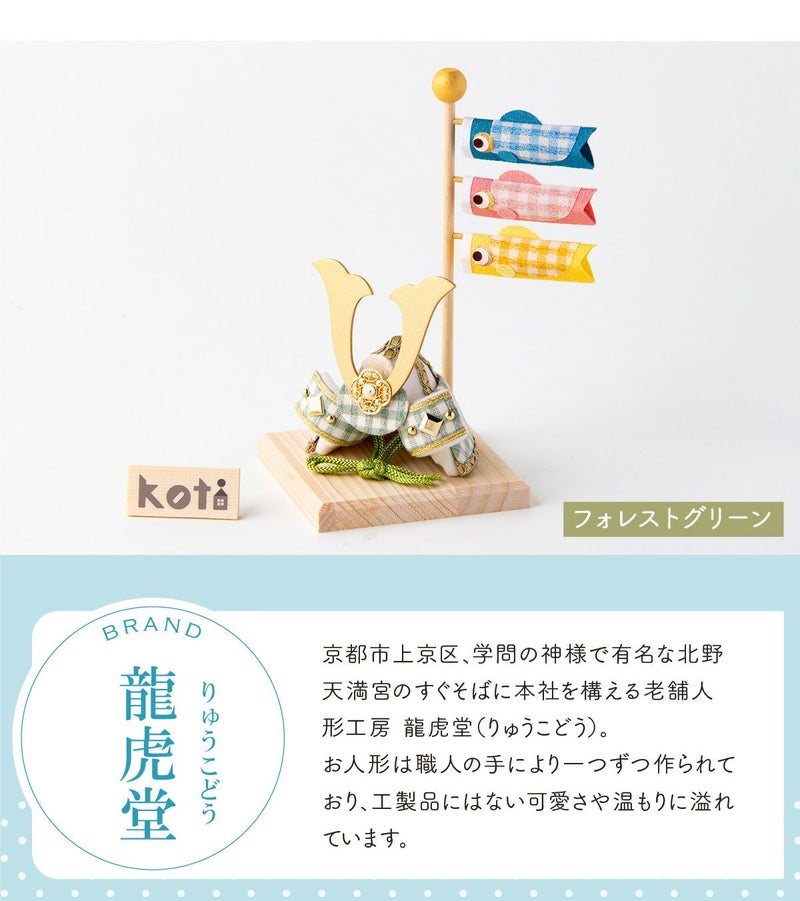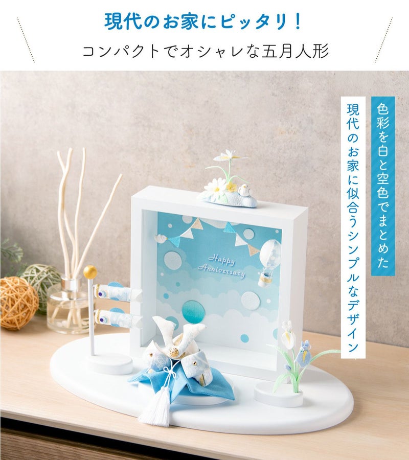 他の画像を見る 販売価格 ¥ 7,700 税込 〜 販売価格 ¥ 税込 詳細を見る お気に入りに登録する 送料無料 おしゃれでモダンな五月人形! 端午の節句を華やかに! 省スペースで飾れる 龍虎堂 五月人形 兜 兜飾り コンパクト かわいい 桐箱セット 2026年 koti 兜と鯉のぼり スカイブルー ちりめん リュウコドウ