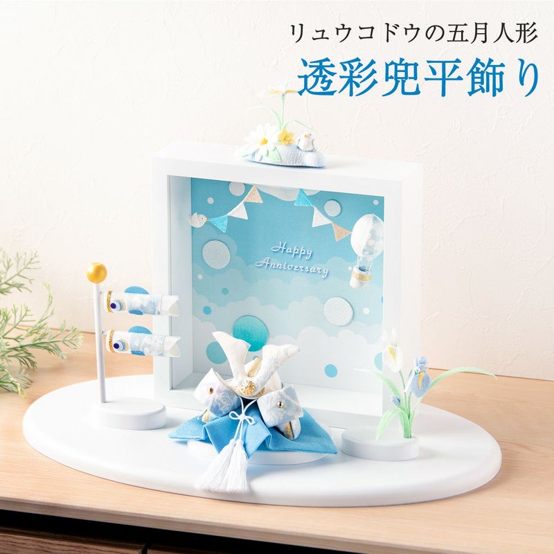 他の画像を見る 定価 ¥ 30,800 のところ 販売価格 ¥ 30,800 税込 詳細を見る お気に入りに登録する 送料無料 おしゃれでモダンな五月人形! 端午の節句を華やかに! 省スペースで飾れる 龍虎堂 五月人形 兜 兜飾り コンパクト かわいい 2026年 透彩兜(そら)フレーム付平飾り ちりめん リュウコドウ