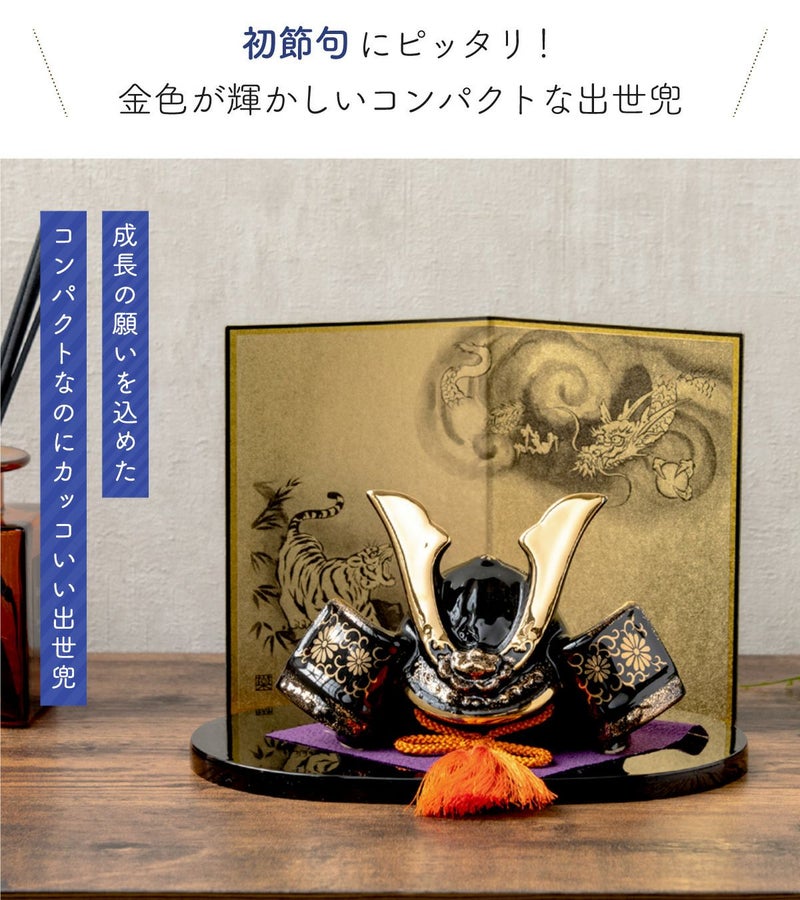 他の画像を見る 販売価格 ¥ 6,050 税込 〜 販売価格 ¥ 税込 詳細を見る お気に入りに登録する 送料無料 送料無料 五月人形 5月人形 コンパクト ミニ 兜 兜飾り 桐箱 五月人形 コンパクト おしゃれ 兜 兜飾り こどもの日 子供の日 2026年 節句飾り 節句人形 陶器 陶磁器 金彩出世兜(菊唐草・龍虎屏風付) 弓太刀 桐箱 ケース飾り