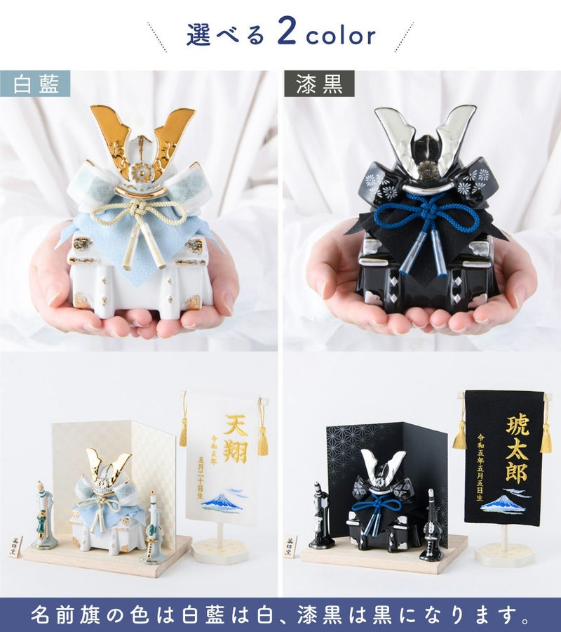 他の画像を見る 販売価格 ¥ 22,600 税込 〜 販売価格 ¥ 税込 詳細を見る お気に入りに登録する おしゃれでモダンな五月人形! 端午の節句を華やかに! 省スペースで飾れる 【新作】五月人形 兜 兜飾り コンパクト かわいい 初節句 陶磁器 名前旗付き 刺繍 ケース飾り 2026年 染絵出世兜飾り 白藍 漆黒 薬師窯