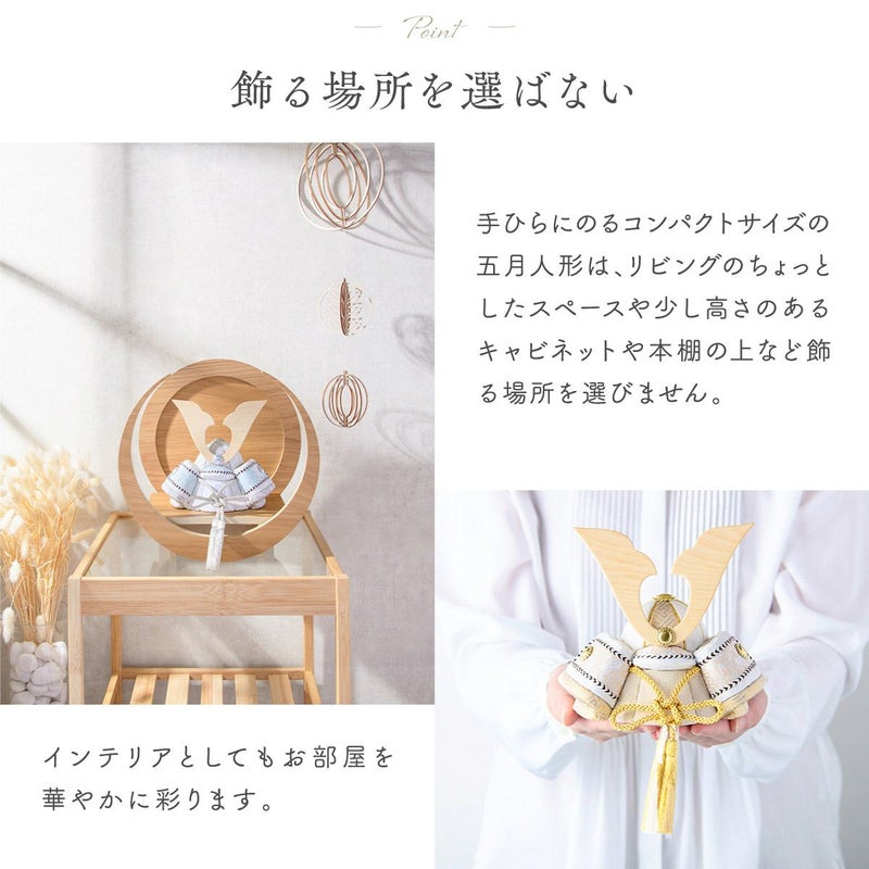 他の画像を見る 販売価格 ¥ 41,000 税込 〜 販売価格 ¥ 税込 詳細を見る お気に入りに登録する おしゃれでモダンな五月人形! 端午の節句を華やかに! 省スペースで飾れる 【新作】五月人形 兜 兜飾り コンパクト かわいい 西陣織 名前旗セット 木目込み 兜 兜飾り 西陣織 2026年 木目込五月人形 吉翔兜(大)平台 月形台座 弓月 白屏風