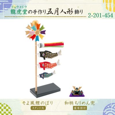 五月人形 こいのぼり 室内鯉のぼり コンパクト かわいい 和柄 兜 ちりめん兜&スタンドそよ風鯉のぼりぼり ちりめん リュウコドウ