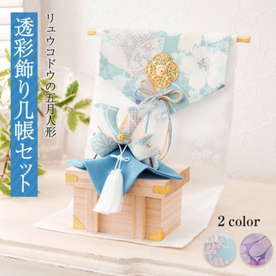 おしゃれでモダンな五月人形! 端午の節句を華やかに! 省スペースで飾れる 龍虎堂 五月人形 兜 兜飾り コンパクト かわいい ケース飾り 初節句 (大)透彩兜飾り几帳セット ちりめん リュウコドウ