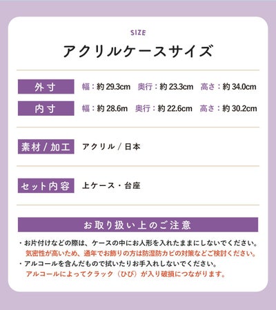 アクリルケースサイズ(外寸)(cm):約 幅29.3/奥行23.3/高さ34