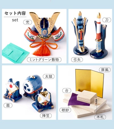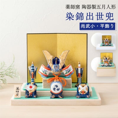 ●五月人形 コンパクト おしゃれ 兜 兜飾り こどもの日 子供の日 節句飾り 節句人形 兜 陶器 陶磁器 染錦出世兜(尚武小・平飾り) 薬師窯●