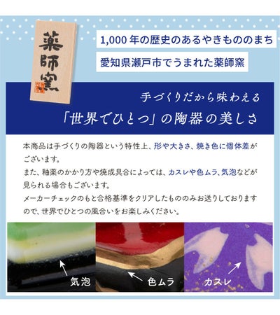 【焼き物の特性上、焼きむら、気泡などが生じる場合がございます】