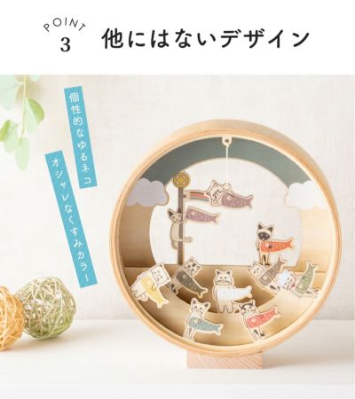 鯉をあげようとしているネコや、それを心配そうに眺めるネコなど個性あふれるネコたちの物語がイメージできそうです。
