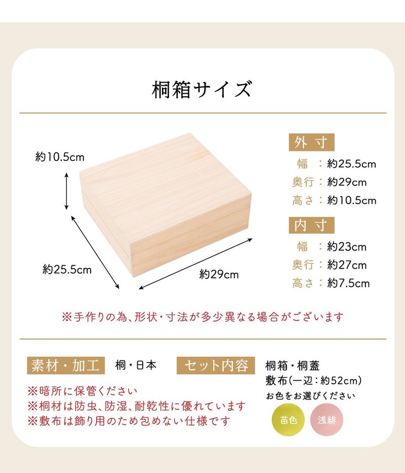 【雛人形 五月人形 兜飾り 迎春飾り 人形用 KH-53F】 桐箱 収納 保管桐箱サイズ 約25.5×29×10.5※桐箱のみ。人形、その他小物は別売り。