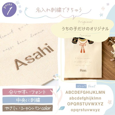 ※なお、お客様に刺繍するお名前の再確認はいたしませんのでご注文時にはお間違いのないようお気をつけください。