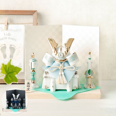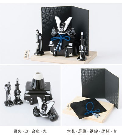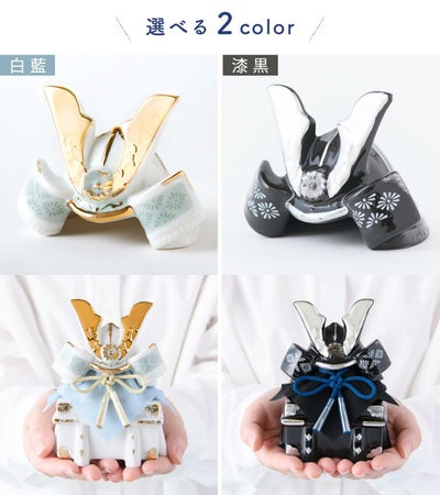●五月人形 コンパクト おしゃれ 兜 兜飾り こどもの日 子供の日 節句飾り 節句人形 兜 陶器 陶磁器 染絵出世兜飾り 白藍 漆黒 薬師窯●