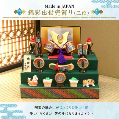 ●五月人形 兜 兜 陶器 陶磁器 錦彩出世兜飾り(三段)瀬戸焼 薬師窯●