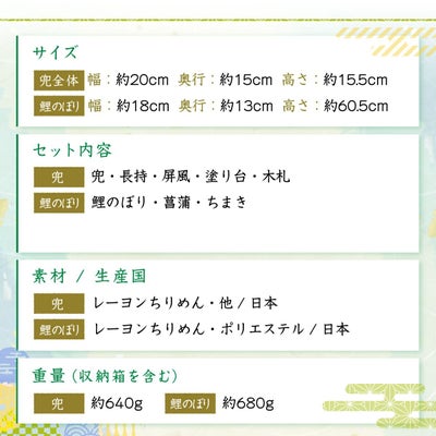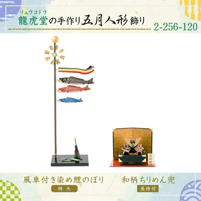 【★2026取扱いなし】五月人形 こいのぼり 室内鯉のぼり コンパクト かわいい 和柄 兜 長持ち飾り&風車付き染め鯉のぼり(特大) ちりめん リュウコドウ