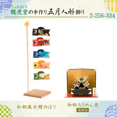 おしゃれでモダンな五月人形! 端午の節句を華やかに! 省スペースで飾れる 龍虎堂 【★2026取扱いなし】五月人形 こいのぼり 室内鯉のぼり 兜 兜飾り コンパクト かわいい 和柄 長持ち飾り&和柄風水こいのぼり ちりめん リュウコドウ