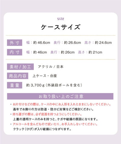 アクリルケース(cm):外寸-幅約46.6/奥行26.6/高さ24.6
