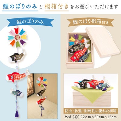 五月人形 こいのぼり 室内鯉のぼり コンパクト かわいい 桐箱 吊りそよ風鯉三匹 ちりめん リュウコドウ