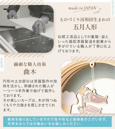 五月人形サイズ(cm):全体-直径24,奥行7,高さ25.5(土台含む)