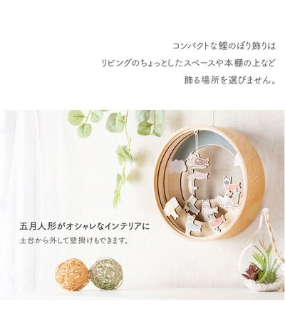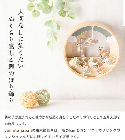 商品特徴:曲木を使用した木のぬくもりある鯉のぼり飾りです。