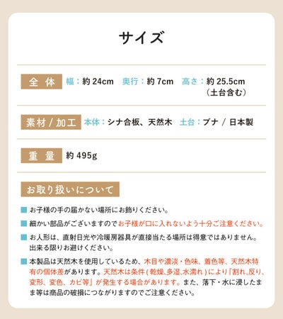 ※お人形に付属の保管箱は、厚手の紙製の箱となります。木製ではございません。ご了承くださいませ。