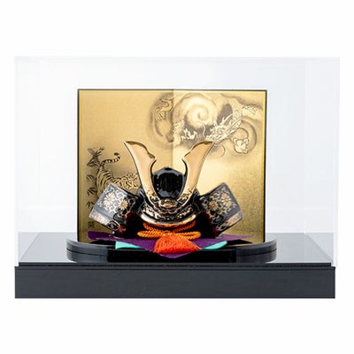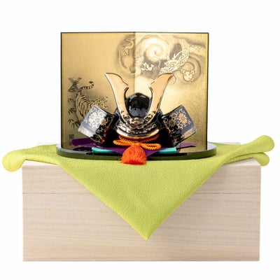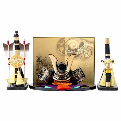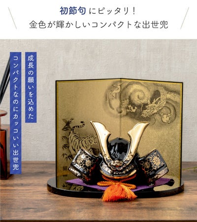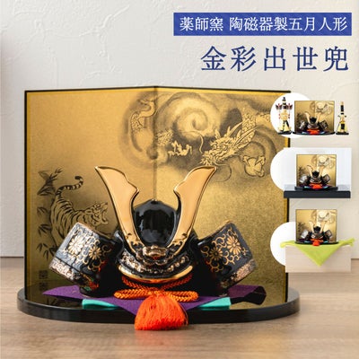 ●【新作】五月人形 コンパクト おしゃれ 兜 兜飾り こどもの日 子供の日 2024年 節句飾り 節句人形 陶器 陶磁器 金彩出世兜(菊唐草・龍虎屏風付) 弓太刀 桐箱 ケース飾り 瀬戸焼 薬師窯 送料無料 (沖縄除く)●