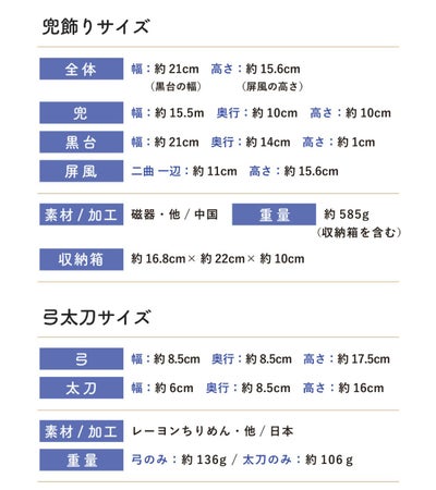 弓 サイズ(cm):約 幅8.5/奥行8.5/高さ17.5、太刀 サイズ(cm):約 幅6/奥行8.5/高さ16