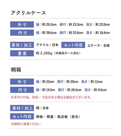 ※お人形に付属の保管箱は、厚手の紙製の箱となります。木製ではございません。ご了承くださいませ。