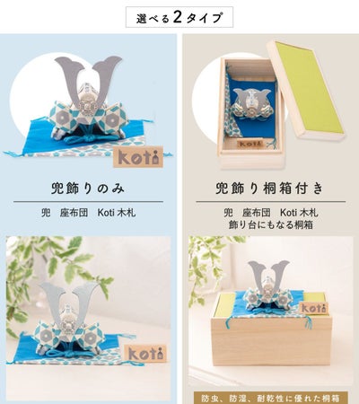おしゃれでモダンな五月人形! 端午の節句を華やかに! 省スペースで飾れる 龍虎堂 五月人形 兜 兜飾り コンパクト かわいい 初節句 Koti(コティ)兜飾り 桐箱セット ちりめん リュウコドウ