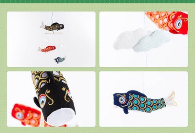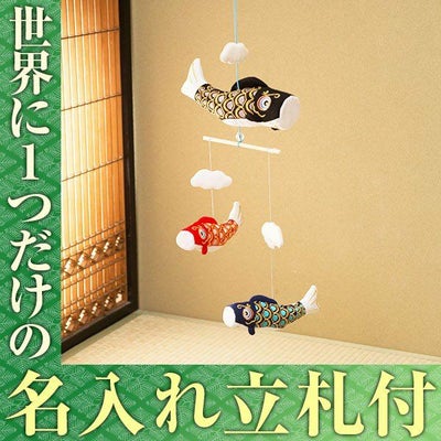 おしゃれでモダンな五月人形! 端午の節句を華やかに! 省スペースで飾れる 龍虎堂 五月人形 こいのぼり 室内鯉のぼり コンパクト かわいい そよ風鯉モビール三匹 ちりめん リュウコドウ