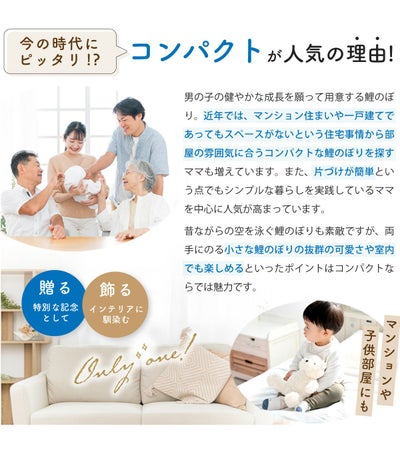 商品特徴:コンパクトサイズになっています。男の子の健やかな成長を願う思いを大切にしたいが、スペースにお困りの方にもおすすめです。