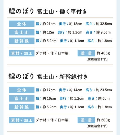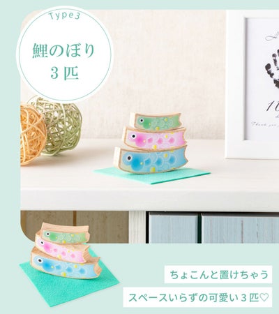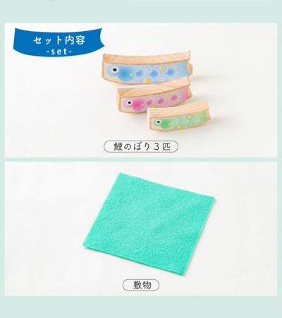 サイズ(cm):鯉のぼり-青(幅8.5×奥1.2×高3),赤(幅7×奥1.2×高2.5),緑(幅5.5×奥1.2×高2)