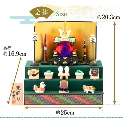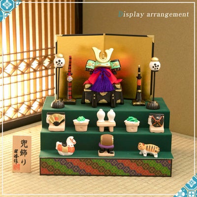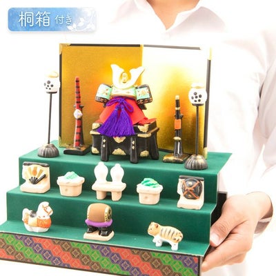 【兜飾り(三段飾り)】ミニでも重厚感漂う陶磁器製です。