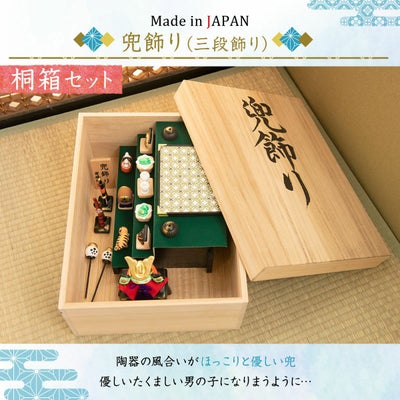 ●五月人形 兜 兜 桐箱セット 陶器 陶磁器 兜飾り(三段飾り)瀬戸焼 薬師窯●