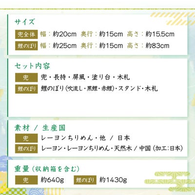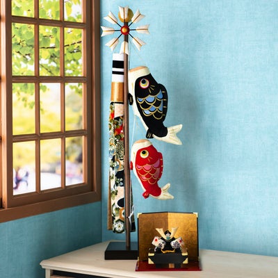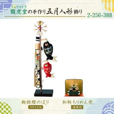 おしゃれでモダンな五月人形! 端午の節句を華やかに! 省スペースで飾れる 龍虎堂 【★2026取扱いなし】五月人形 こいのぼり 室内鯉のぼり 兜 兜飾り コンパクト かわいい 長持ち飾り&スタンド(大)絢飾こいのぼり ちりめん リュウコドウ