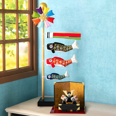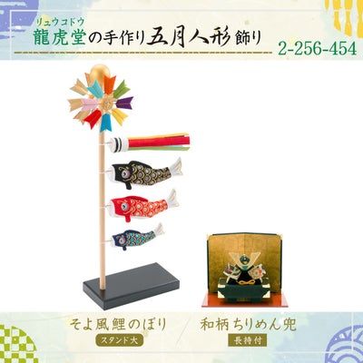【★2026取扱いなし】五月人形 コンパクト おしゃれ 兜飾り 和柄 兜 長持ち飾り&スタンドそよ風鯉のぼりり ちりめん 室内 端午の節句 初節句 子供の日 マンションサイズ 京都老舗 龍虎堂 リュウコドウ 送料無料 (沖縄除く)