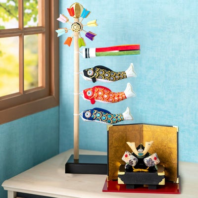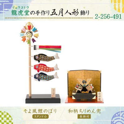 【★2026取扱いなし】五月人形 コンパクト おしゃれ 兜飾り 和柄 兜 長持ち飾り&(小)スタンドそよ風鯉のぼり ちりめん 室内 端午の節句 初節句 子供の日 マンションサイズ 京都老舗 龍虎堂 リュウコドウ 送料無料 (沖縄除く)