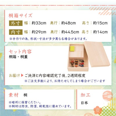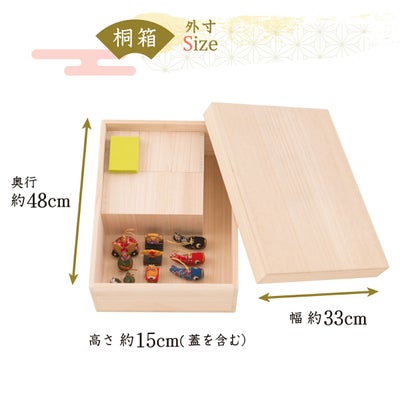桐箱サイズ(cm):外寸-幅約33/奥行48/高さ15 ・ 内寸-幅約29/奥行44.5/高さ14