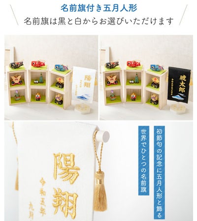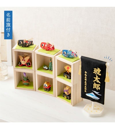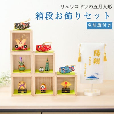 おしゃれでモダンな五月人形! 端午の節句を華やかに! 省スペースで飾れる 龍虎堂 五月人形 兜 兜飾り 鯉のぼり コンパクト かわいい 初節句 2026年 名前旗セット 刺繍 箱段お飾り ちりめん リュウコドウ