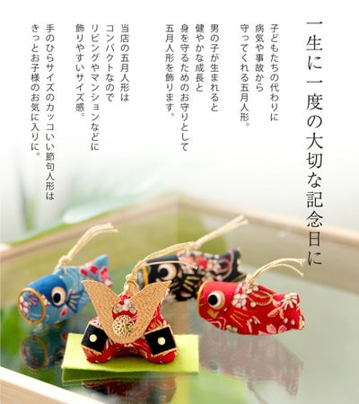 コンパクトミニサイズでマンションや玄関飾りとしても人気の節句飾りです。