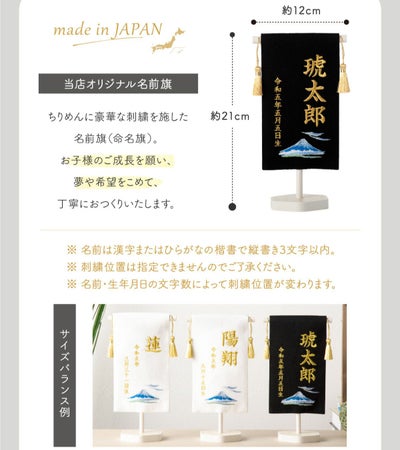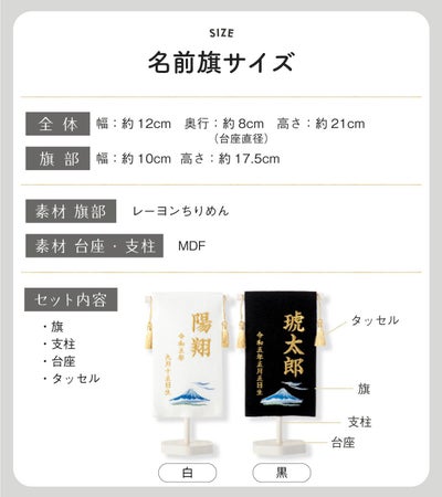 【仕様】旗部サイズ:約17.5cmX約10cm 全体サイズ:高さ約21cm、幅約12cm、奥行:8cm(台座直径)