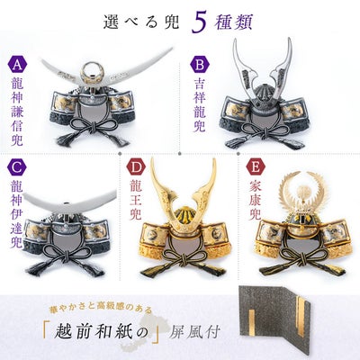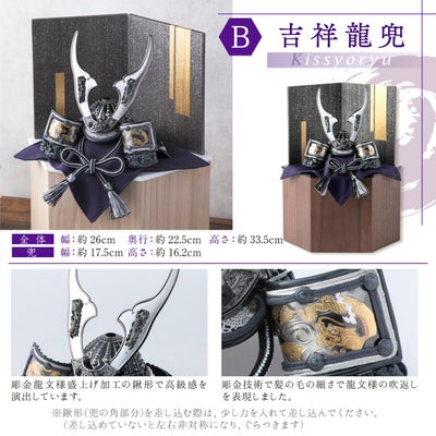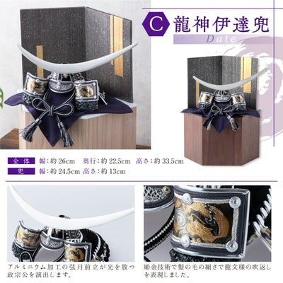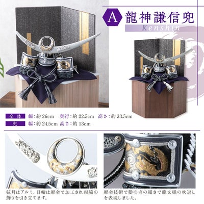 ●五月人形 新作 コンパクト おしゃれ 兜 兜飾り 兜用収納飾り 六角 台つき ミニ 木製 戦国武将兜 皇宸 オリジナル 道具 セット 出世兜 人気 龍神謙信/吉祥龍/龍神伊達/龍王/家康●