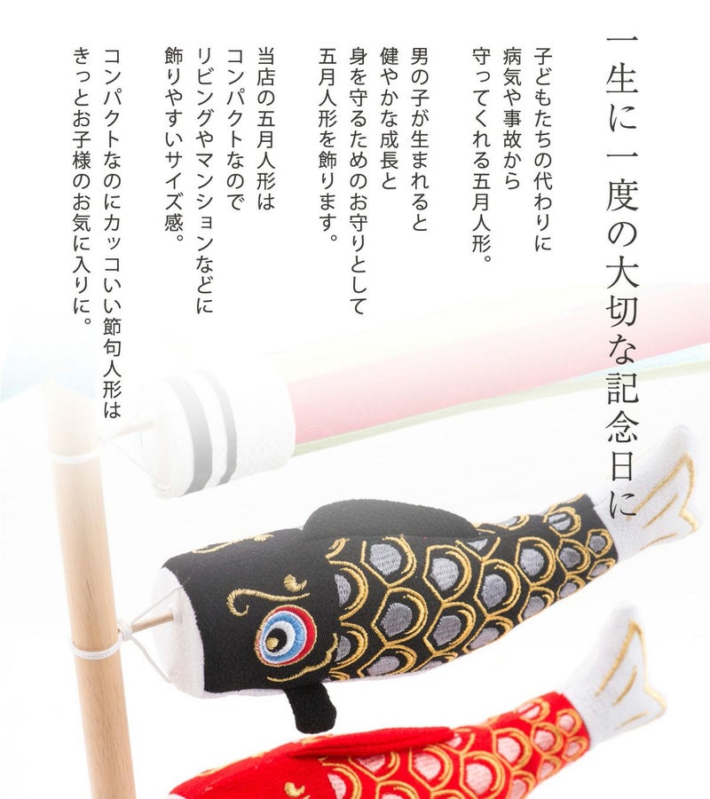 他の画像を見る 販売価格 ¥ 22,000 税込 〜 販売価格 ¥ 税込 詳細を見る お気に入りに登録する 送料無料 おしゃれでモダンな五月人形! 端午の節句を華やかに! 省スペースで飾れる 龍虎堂 五月人形 【スタンドそよ風鯉のぼり 大 小】 兜 鯉のぼり 龍虎堂 リュウコドウ