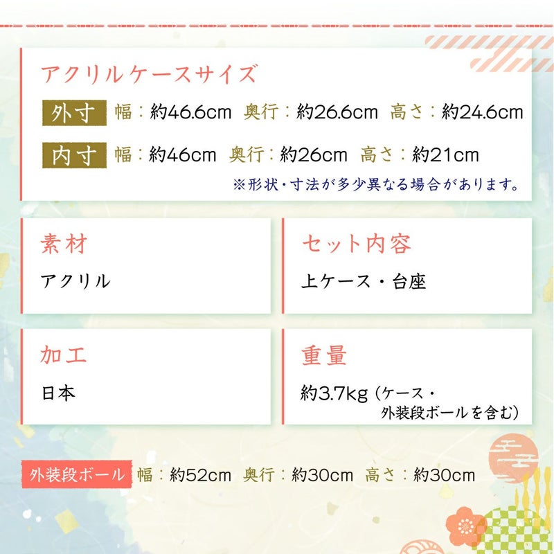 他の画像を見る 定価 ¥ 28,400 のところ 販売価格 ¥ 28,400 税込 詳細を見る お気に入りに登録する 送料無料 おしゃれでモダンな五月人形! 端午の節句を華やかに! 省スペースで飾れる 龍虎堂 龍虎堂 五月人形 ケース飾り【金襴金兜 屏風 アクリルケース入り】 兜飾り リュウコドウ※2/19発送予定