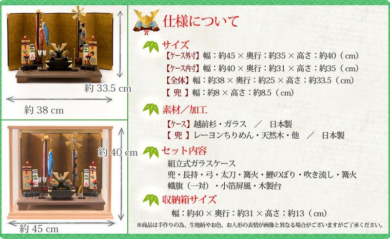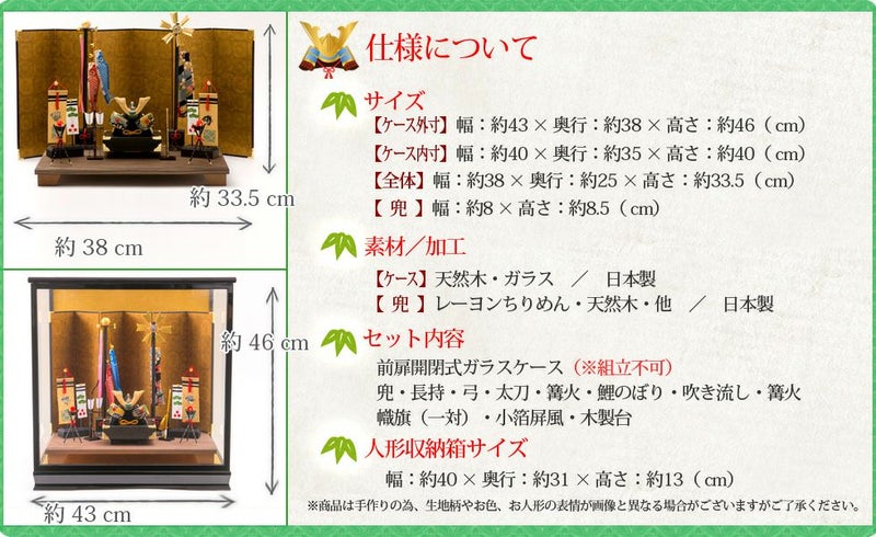 他の画像を見る 定価 ¥ 74,800 のところ 販売価格 ¥ 74,800 税込 詳細を見る お気に入りに登録する 送料無料 おしゃれでモダンな五月人形! 端午の節句を華やかに! 省スペースで飾れる 龍虎堂 【★2026取扱いなし】五月人形 兜 兜飾り コンパクト かわいい アクリルケース 端午のお飾りセット(兜 兜飾り)杉製ガラスケース入り ちりめん リュウコドウ 在庫切れ