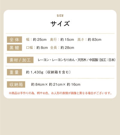 ※お人形の付属の保管箱は厚手の紙製のお箱となります。
