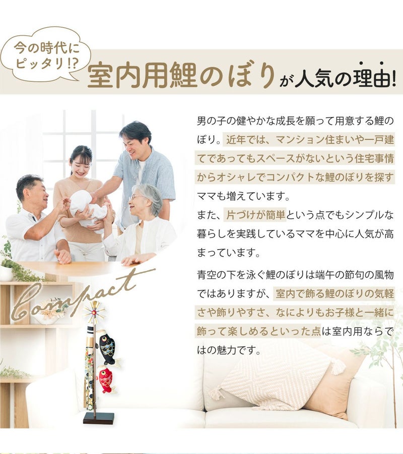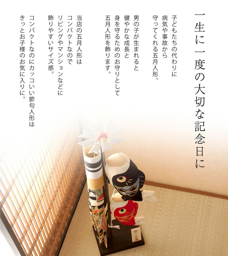 他の画像を見る 定価 ¥ 28,600 のところ 販売価格 ¥ 28,600 税込 おしゃれでモダンな五月人形! 端午の節句を華やかに! 省スペースで飾れる 龍虎堂 五月人形 こいのぼり 室内鯉のぼり コンパクト かわいい スタンド(大)絢飾こいのぼり 室内鯉のぼり ちりめん リュウコドウ 送料無料 在庫切れ 詳細を見る お気に入りに登録する