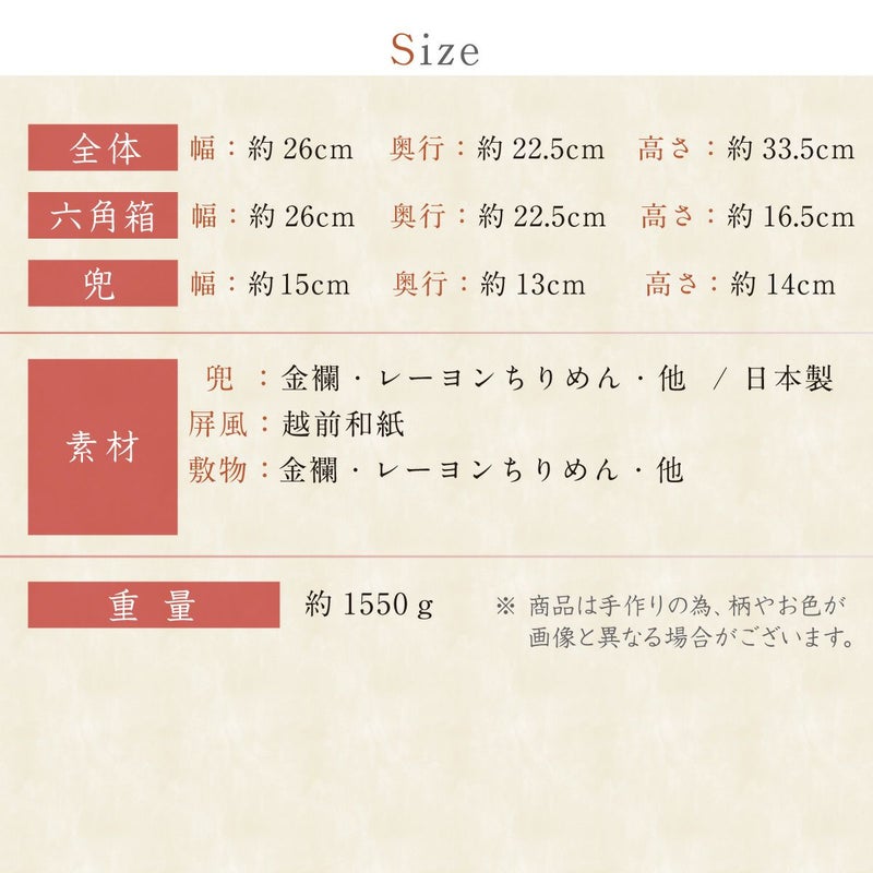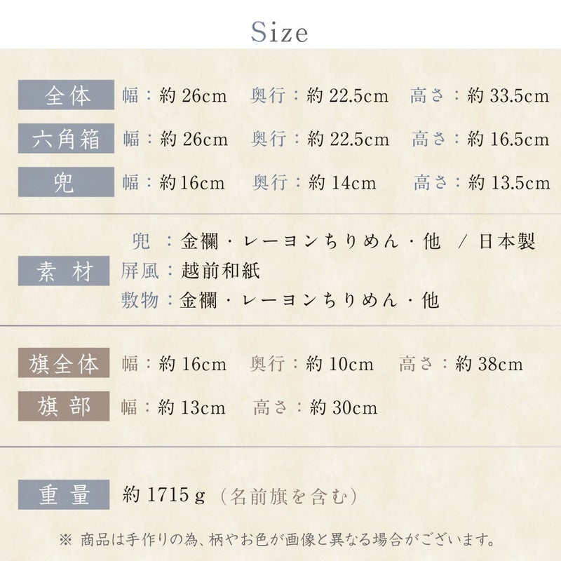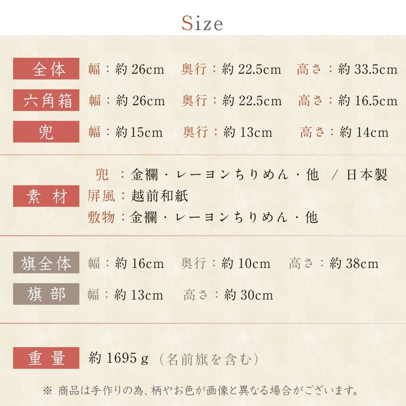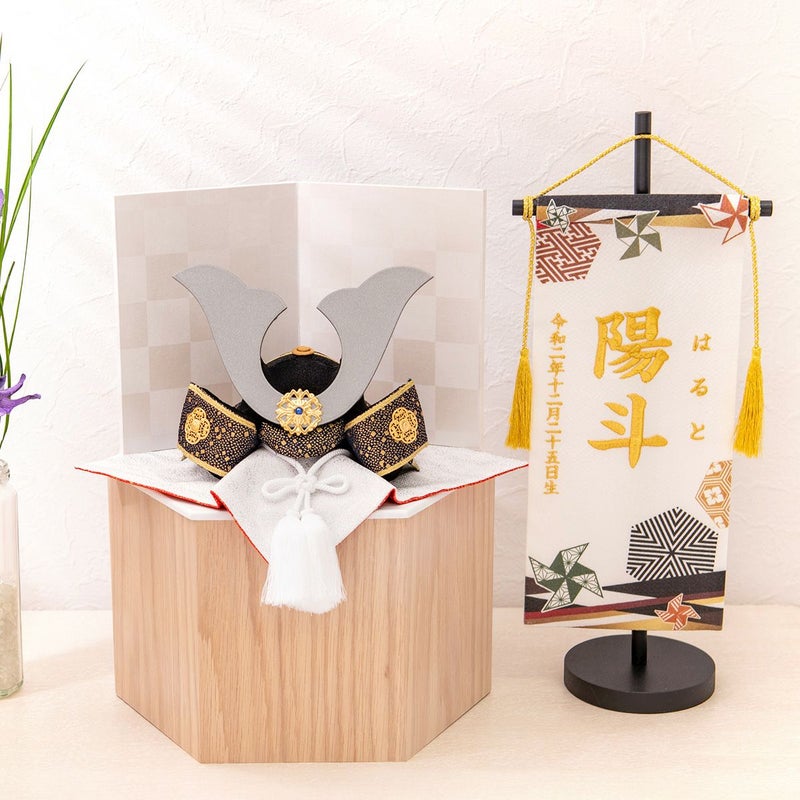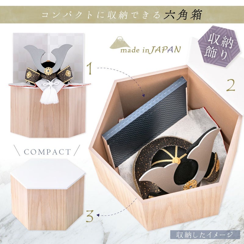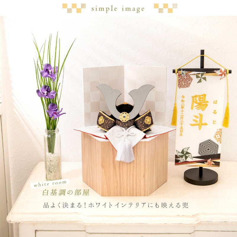 他の画像を見る 定価 ¥ 48,600 のところ 販売価格 ¥ 48,600 税込 おしゃれでモダンな五月人形! 端午の節句を華やかに! 省スペースで飾れる 龍虎堂 五月人形 兜 兜飾り 武将 収納飾り 五月人形 六角箱金襴銀兜 兜飾り 屏風付 名前旗 風車 ちりめん リュウコドウ 送料無料 在庫切れ 詳細を見る お気に入りに登録する