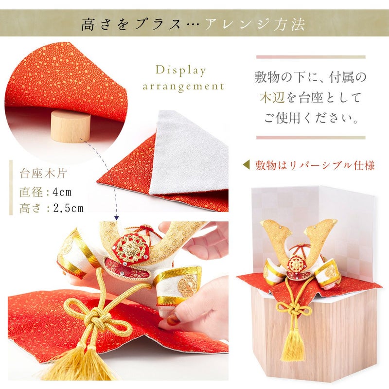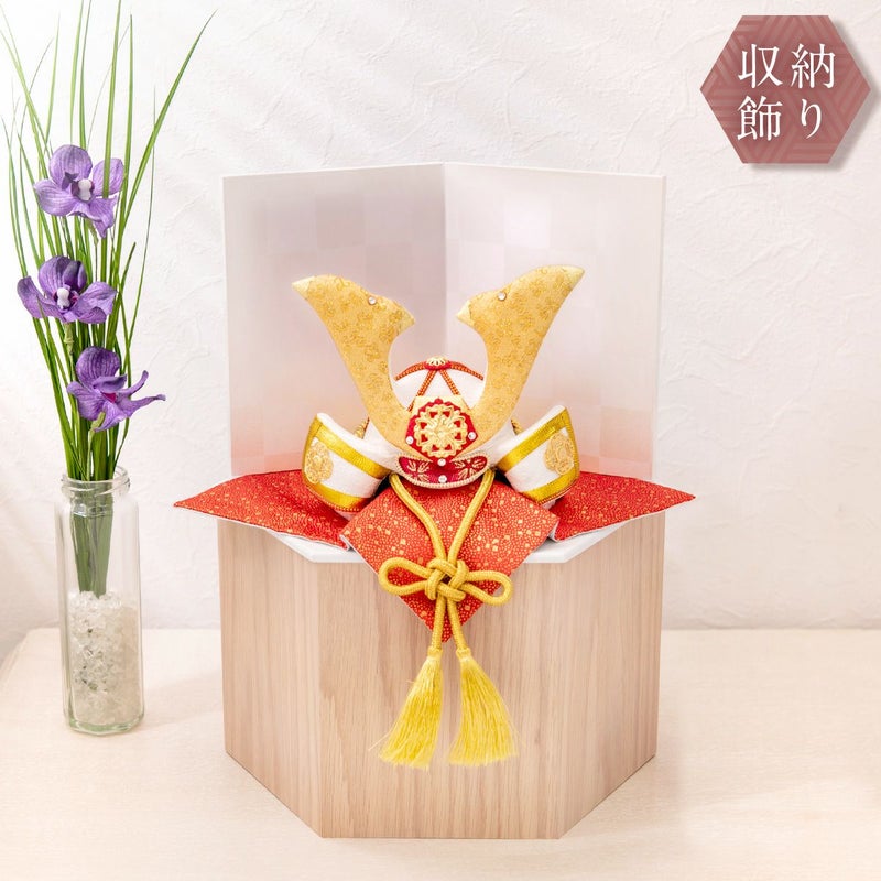 他の画像を見る 定価 ¥ 35,800 のところ 販売価格 ¥ 19,800 税込 おしゃれでモダンな五月人形! 端午の節句を華やかに! 省スペースで飾れる 龍虎堂 【今がお得★44%OFF!!】五月人形 兜 兜飾り 武将 収納飾り 五月人形 六角箱金色悠久兜 屏風付 ちりめん リュウコドウ 送料無料 在庫切れ 詳細を見る お気に入りに登録する