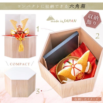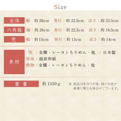 付属:兜・六角収納箱【意匠登録出願済】・屏風・敷物・土台木片・アクリルケース