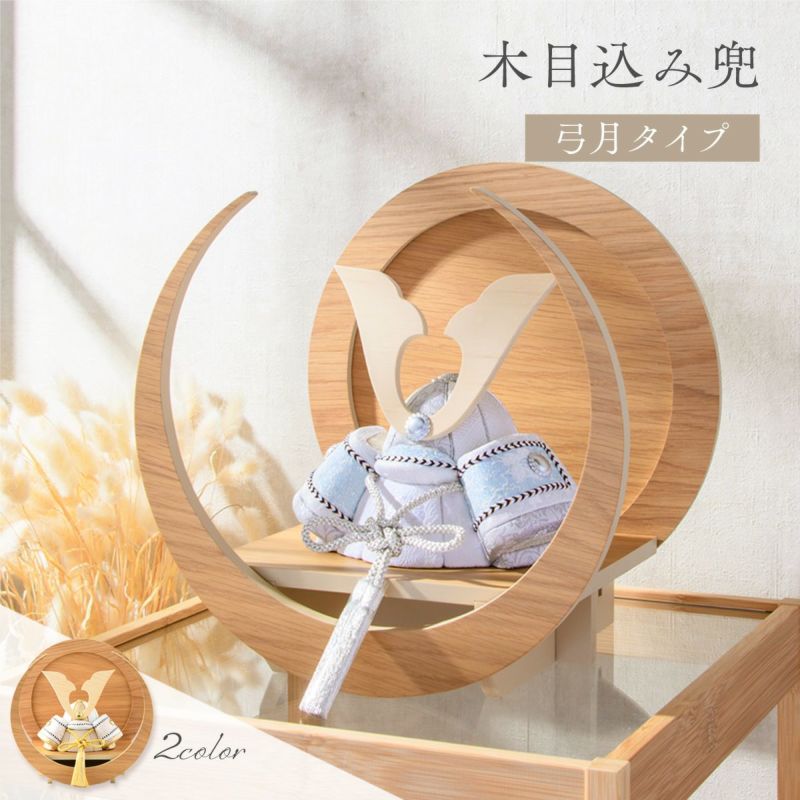 ◆五月人形 コンパクト おしゃれ 木目込み 兜 兜飾り 西陣織 2025年 木目込五月人形 吉翔兜(大)月型台座 弓月 インテリア かわいい 端午の節句 初節句 子供の日 ミニ サイズ 贈り物 ギフト 初節句 ギフト 人気 インテリア レビュー投稿 おまけ 名前 木札◆