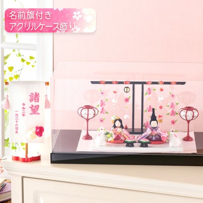 雛人形 コンパクト かわいい ケース飾り 名前旗 プりてぃ舞桜 ぽんぽん兎雛 吊るし雛 親王飾り リュウコドウ