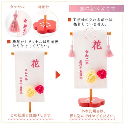 素材:(旗部)レーヨンちりめん・(台座)MDF・(花)アーティフィシャルフラワー(造花)